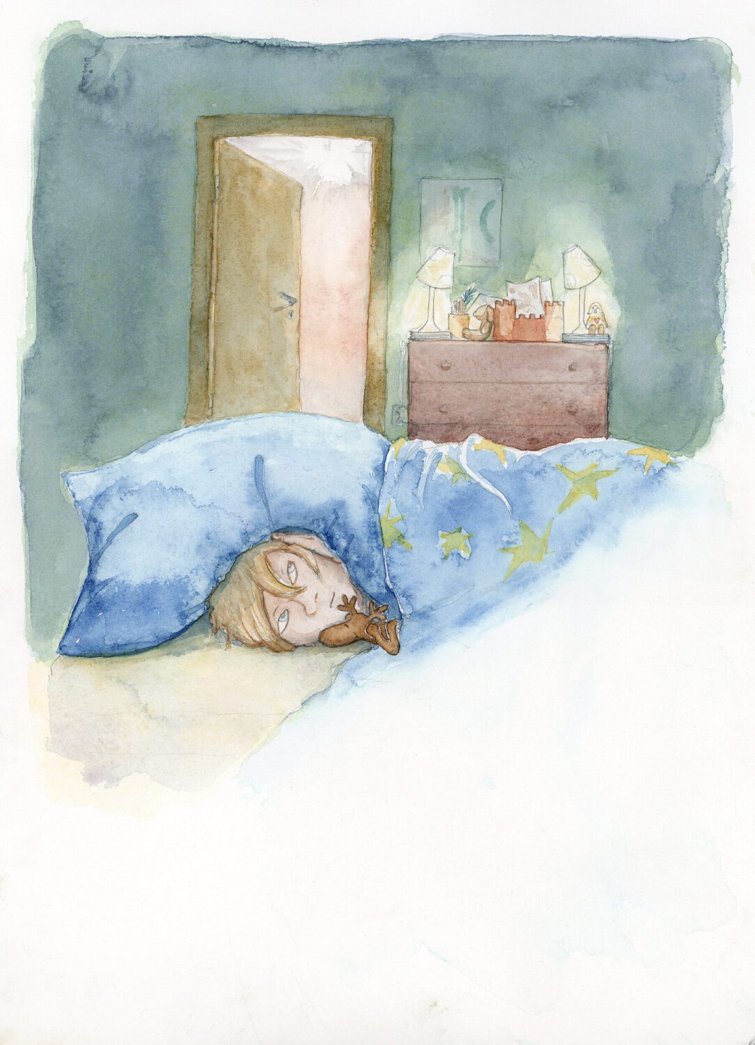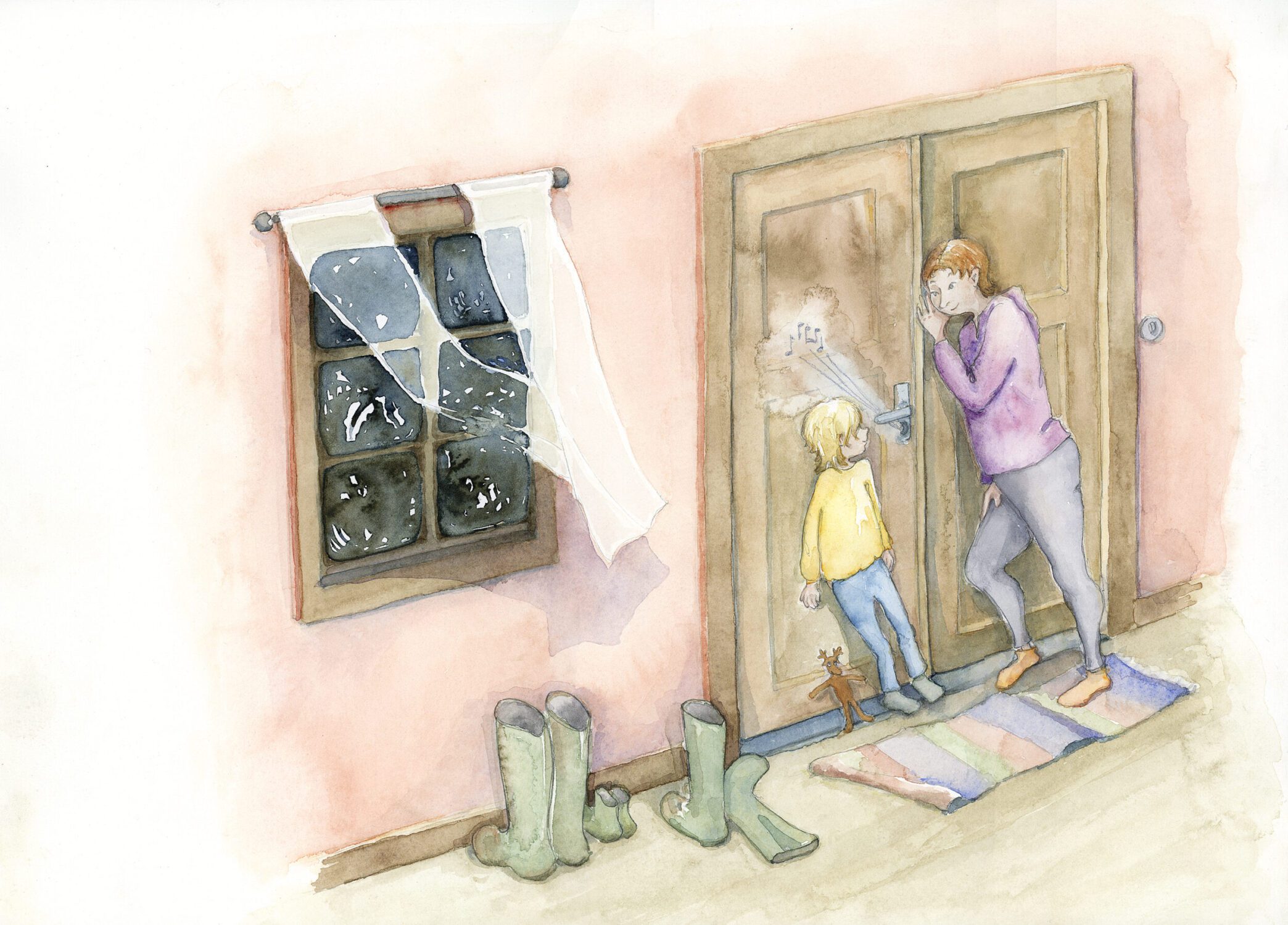 Illustration av barnbok för läsare mellan sex och nio år. Boken beskriver ett barns hantering av en pappa som lider av psykisk ohälsa.
