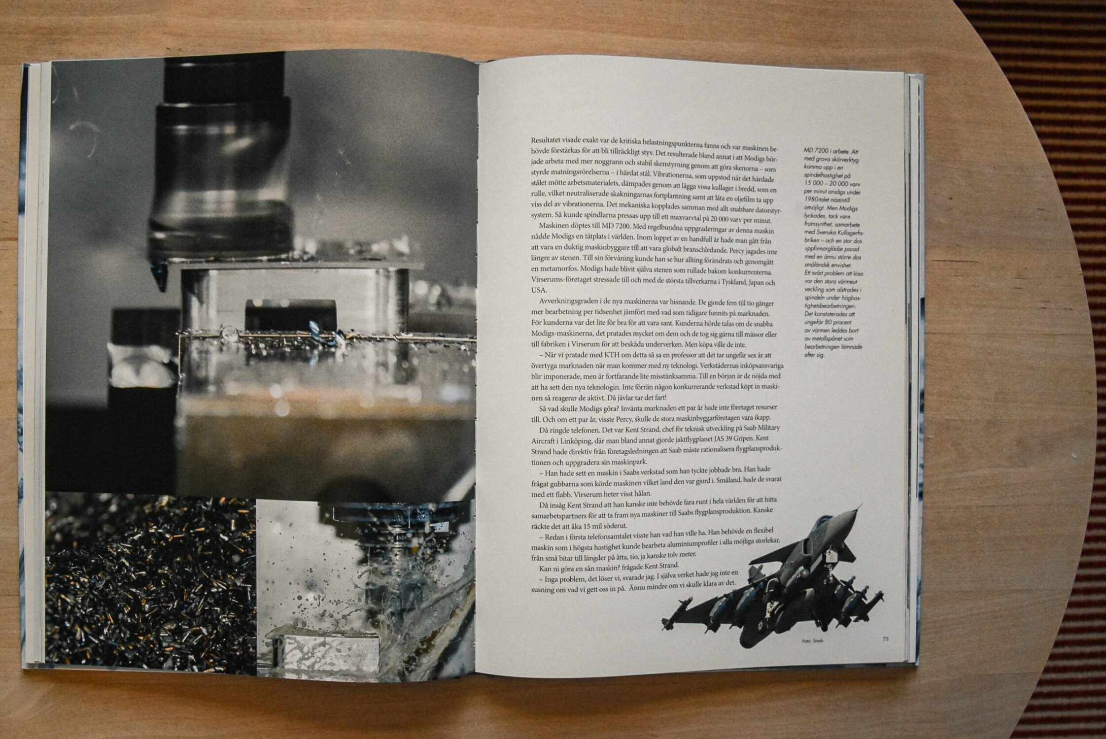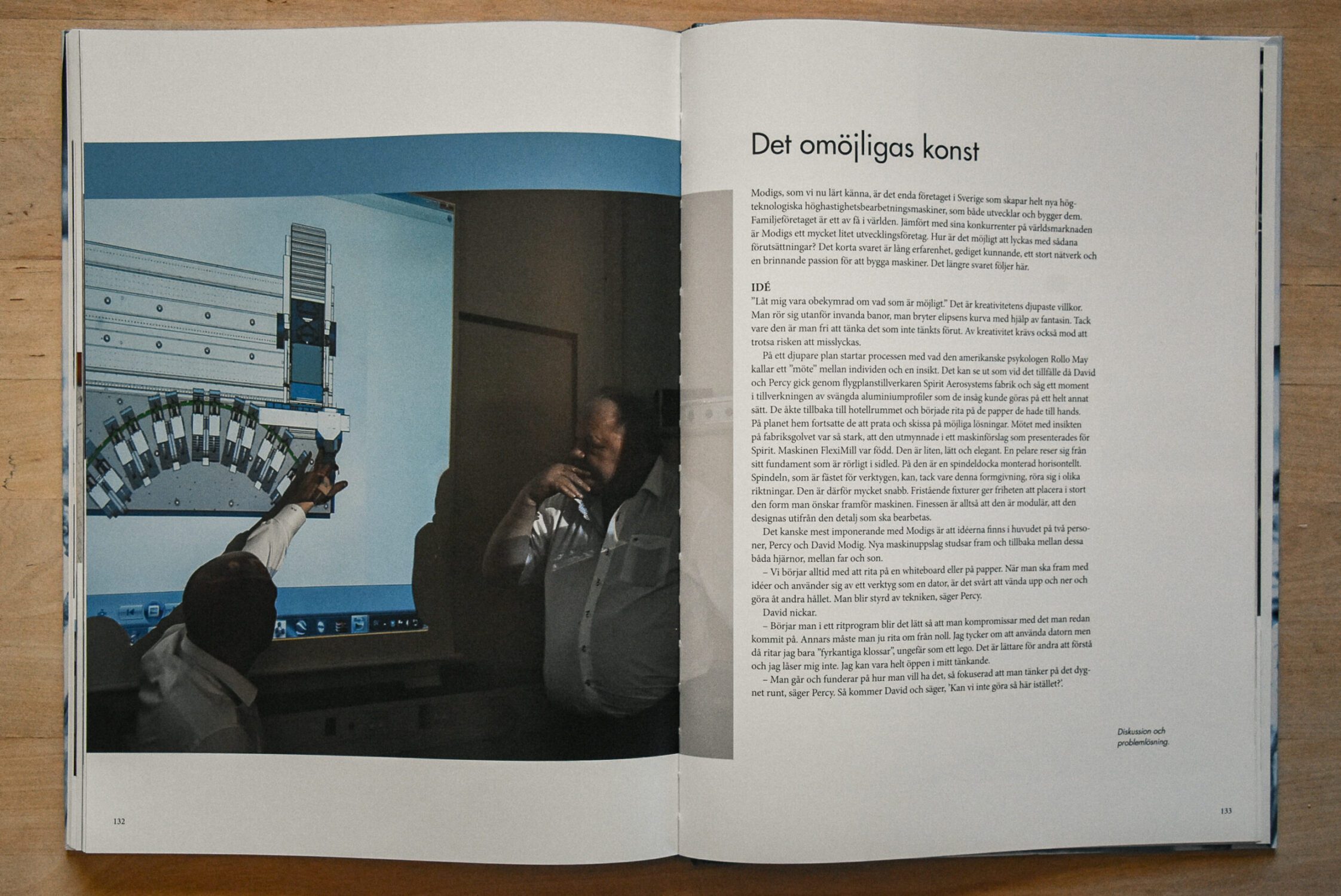 Dåtid, nutid och framtid samlad i bokform. Modigs är ett familjeföretag, i fjärde generationen, som uppfinner, utvecklar och tillverkar högteknologiska bearbetningsmaskiner. En berättelse om småländskt entreprenörskap, glöd och finurlighet.