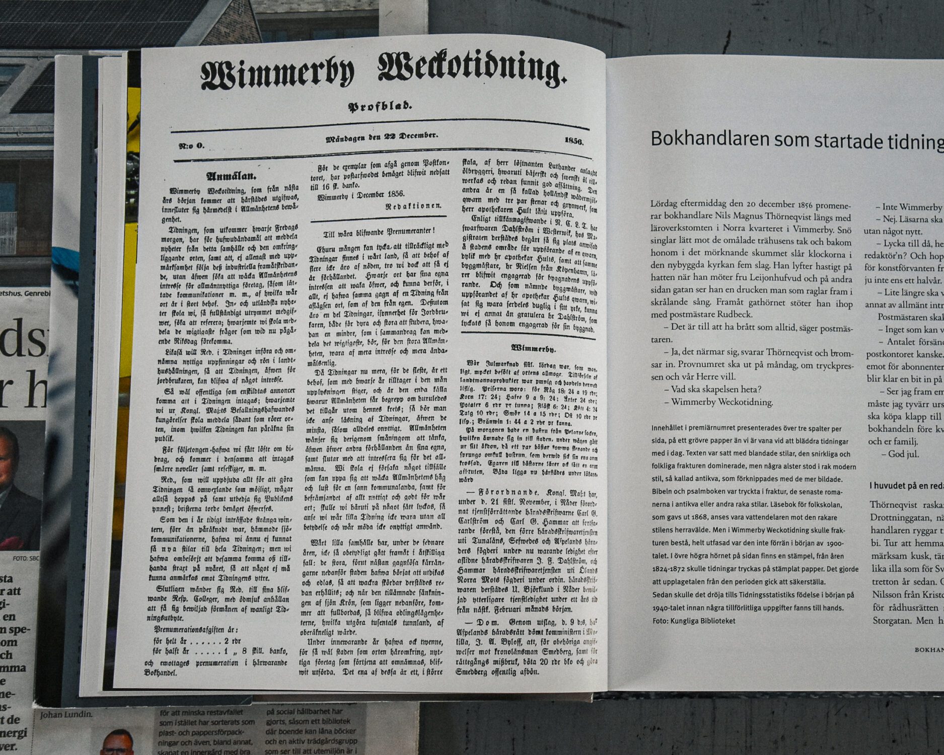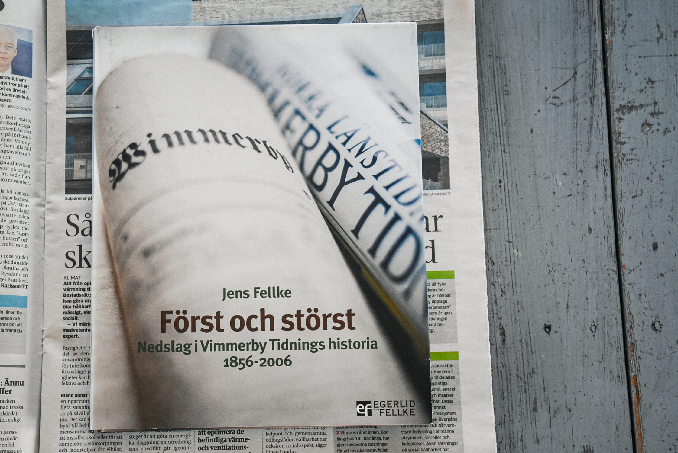 Berättelsen om Vimmerby tidnings historia. Tidningens valspråk har alltid varit att vara först på plats. Trolig orsak till att denna lilla lokaltidning fortfarande är störst.