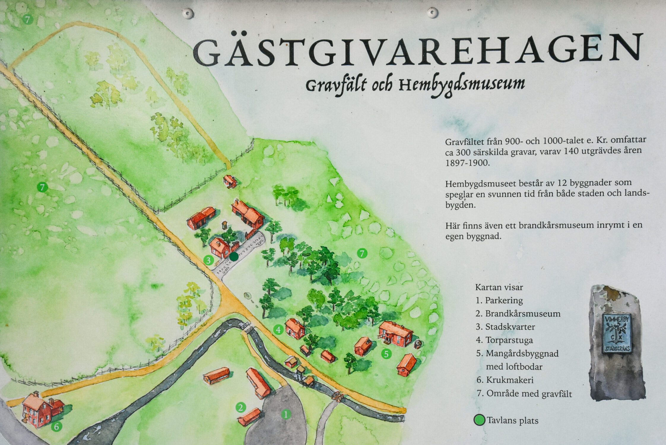 Behovet av en lättförståelig karta samt skyltar över Vimmerbys hembygdspark och arkeologiska lämningar resulterade i denna illustration.