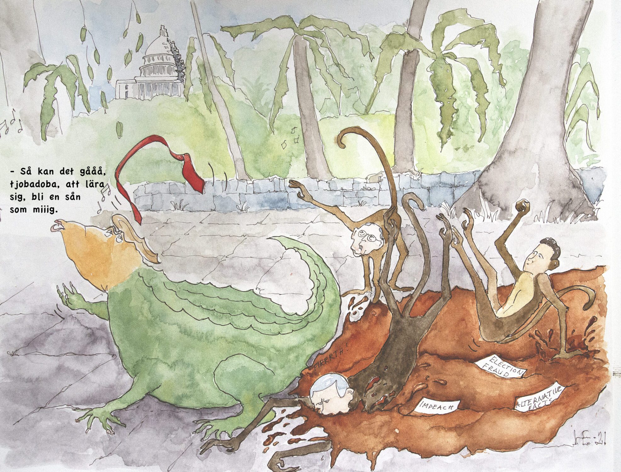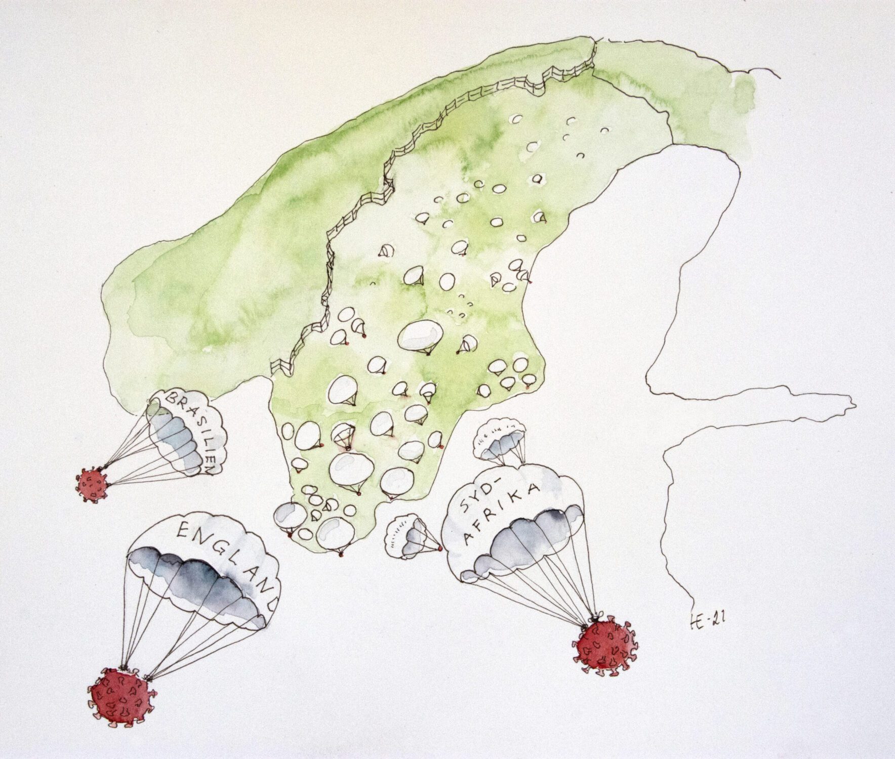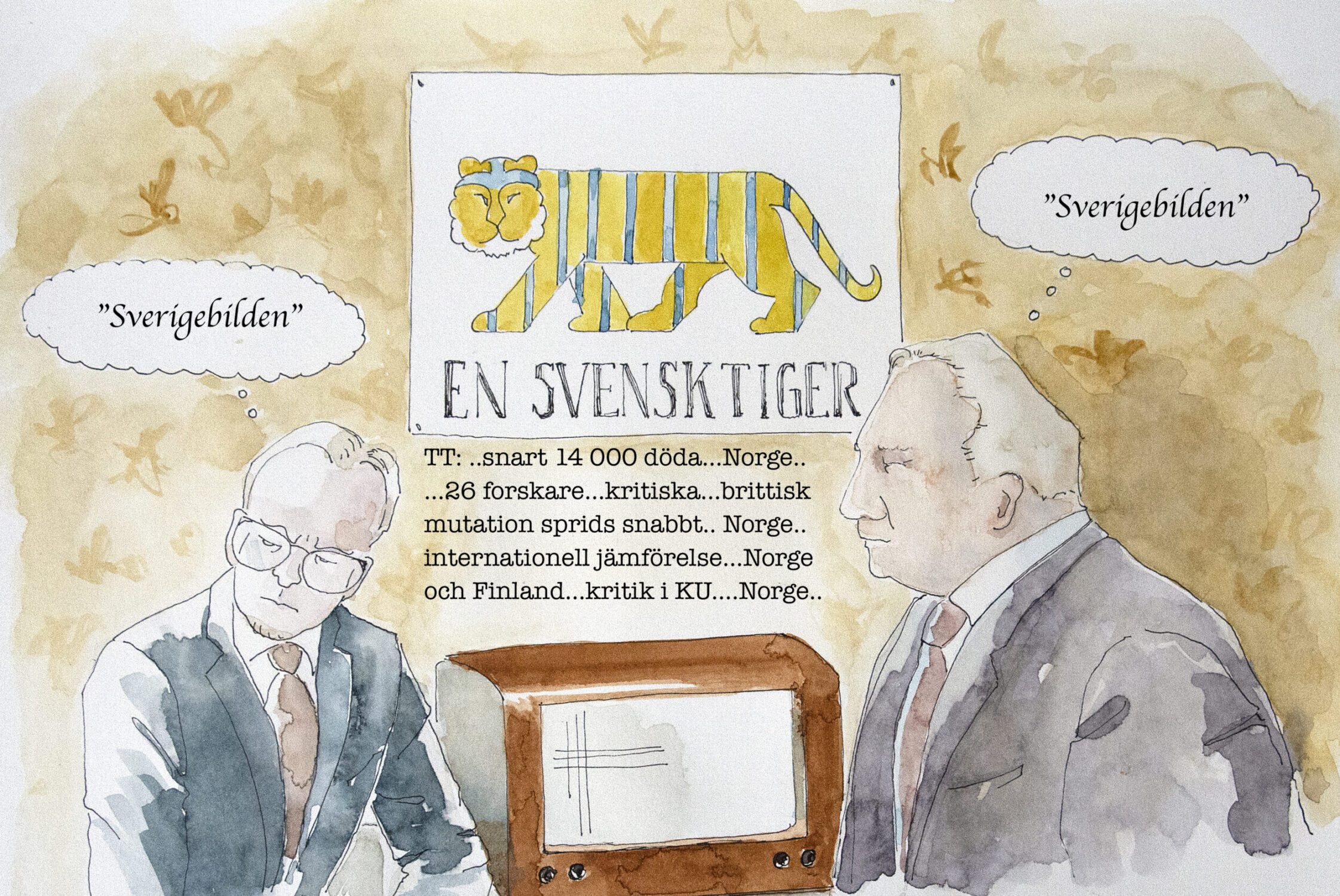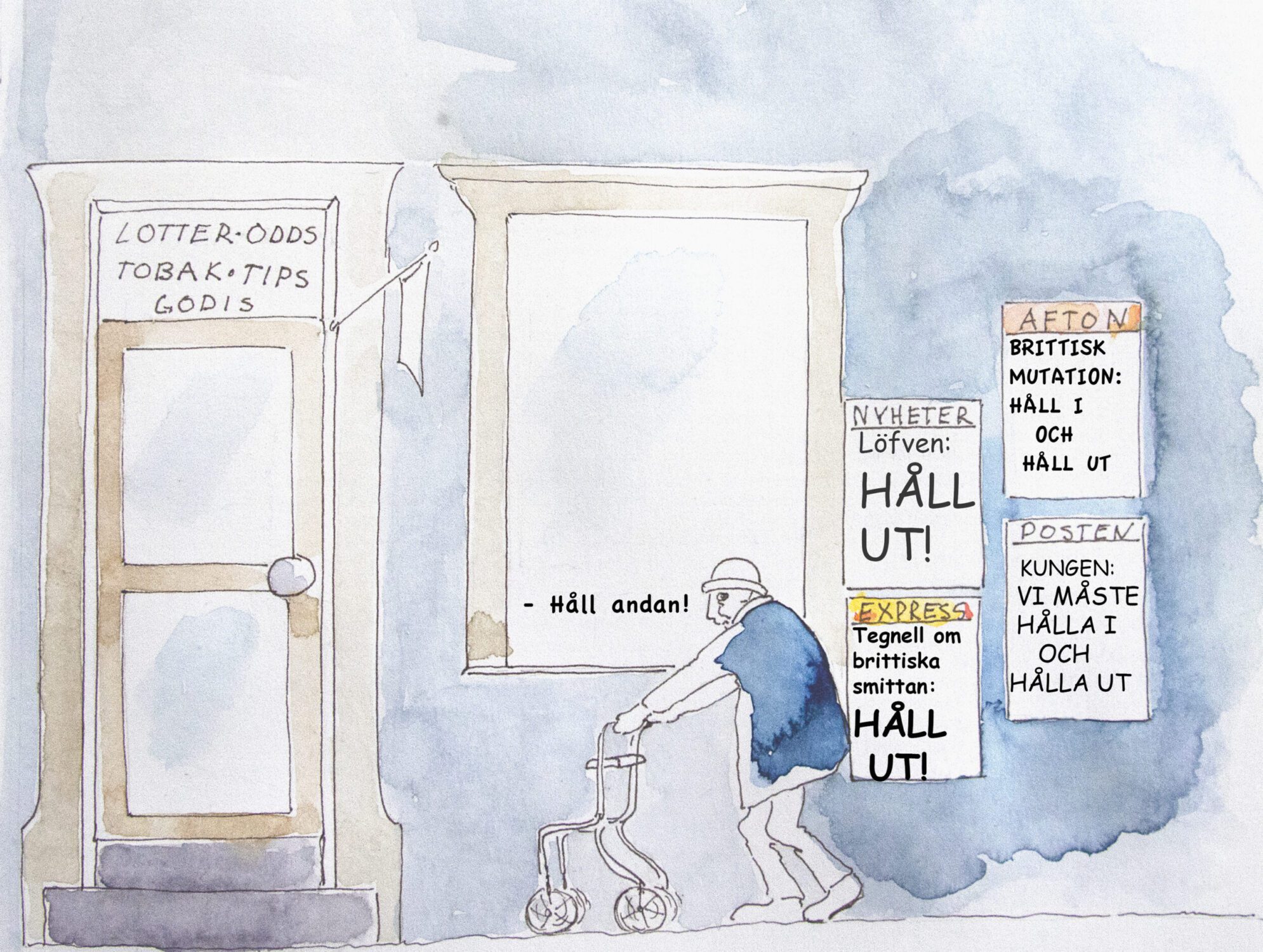 Fritt tecknade under pandemin, ofta med udden riktad mot just det ämnet, publicerade i DN.